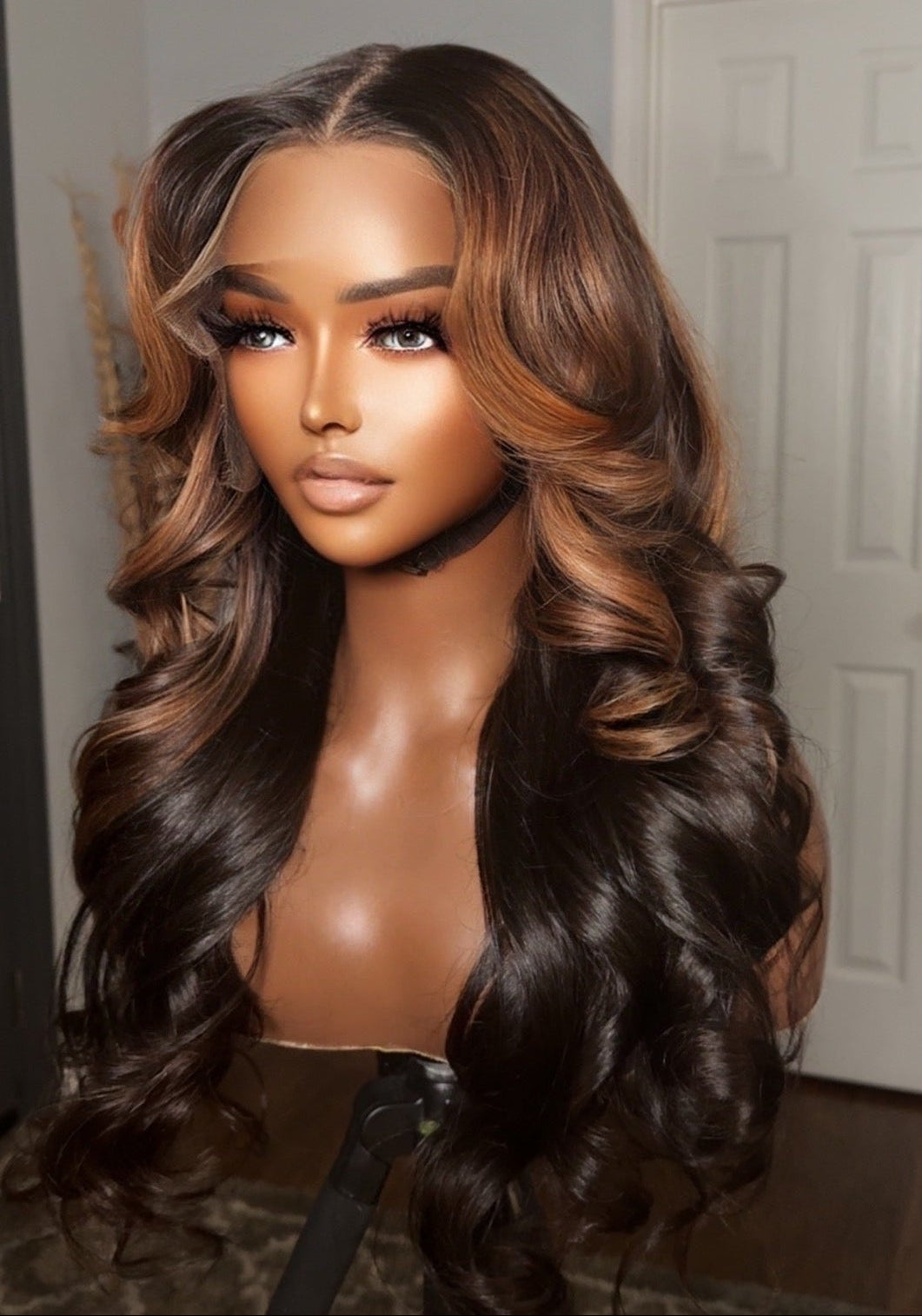 "Honey" Blonde/Brown Highlight CAMBODIAN Lace Wig