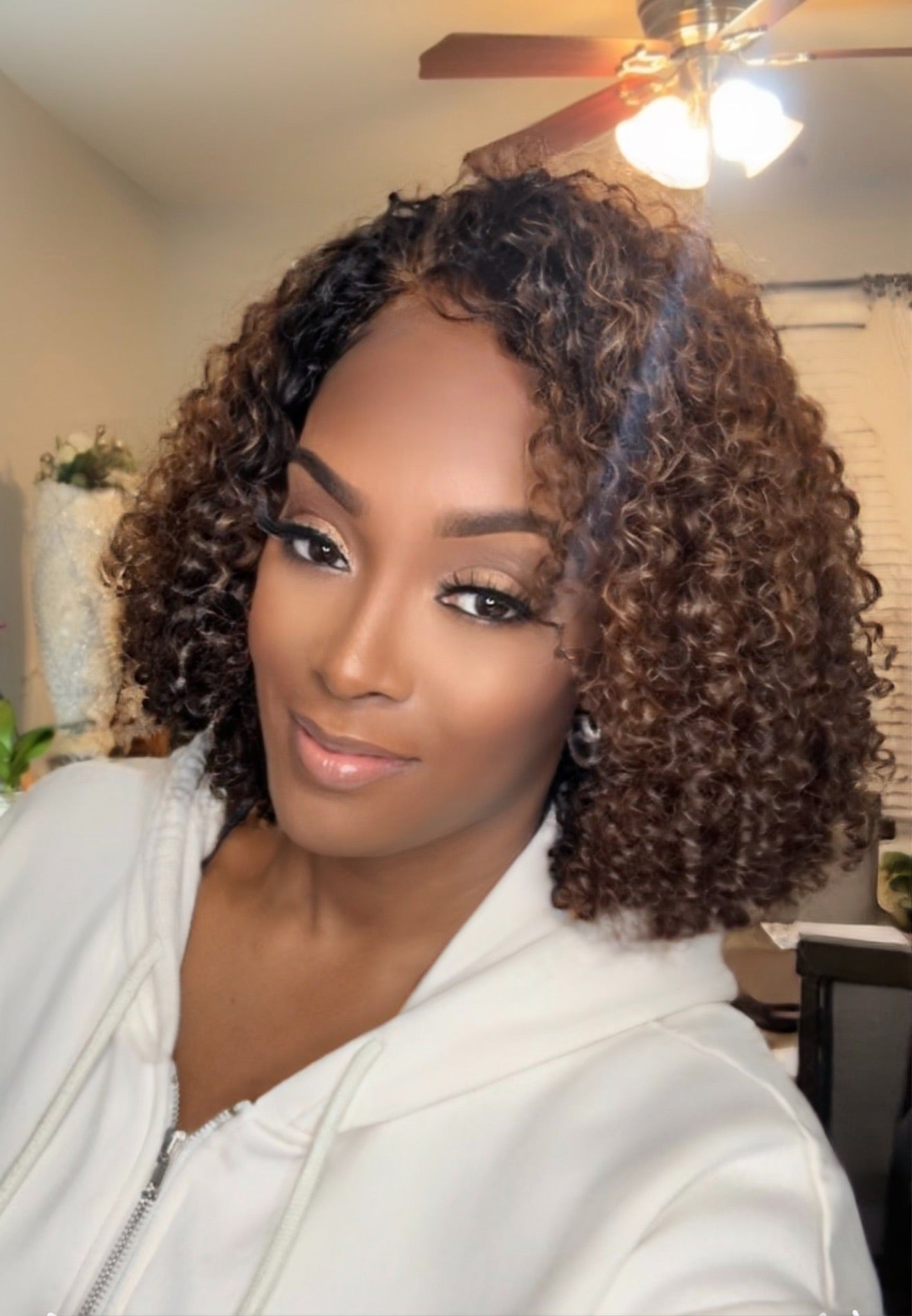 Discover the "Brenda" Brown Ombre Natural Kinky Curly Glueless Sheer Scalp Lace Bob Wig, engineered to mirror the authentic texture of Type 4 afro curly hair. The innovative sheer scalp lace construction creates an undetectable hairline for a seamless, natural appearance. This glueless design eliminates the need for adhesives, making installation quick and damage-free. The kinky curl pattern delivers genuine volume and movement, while the brown ombre coloring provides sophisticated dimension. Ideal for protective styling, this bob wig combines realistic aesthetics with practical comfort and versatility.