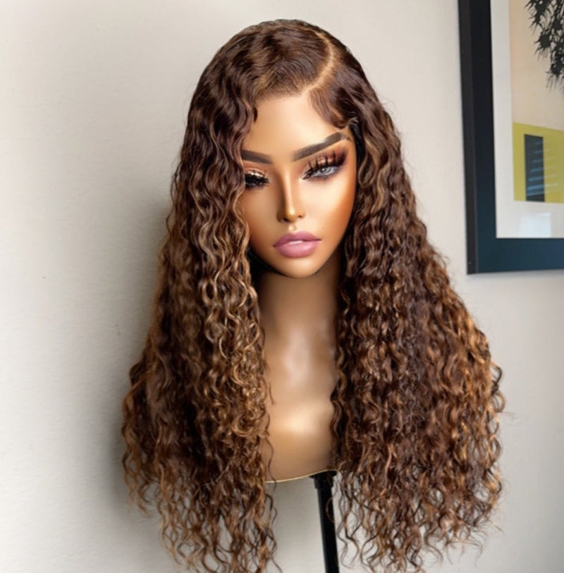 "Venus" Brown Honey Blonde Highlighted Water Wavy Lace Wig