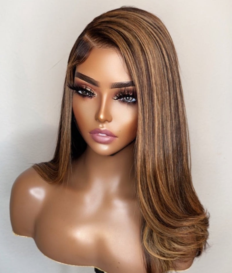 "Honey" Blonde/Brown Highlight CAMBODIAN Lace Wig