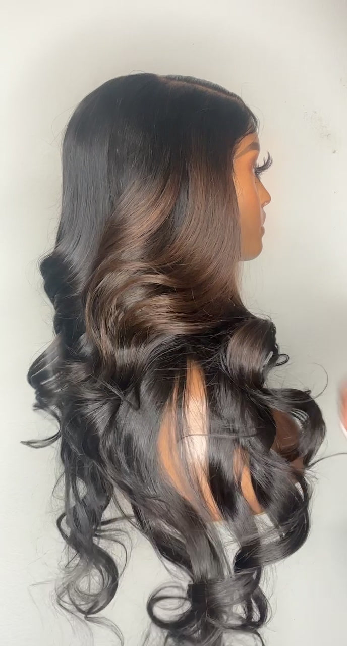 "CIARA" Wand Curled Cambodian Deep Layered 2 tone Brown Highlight Lace Wig