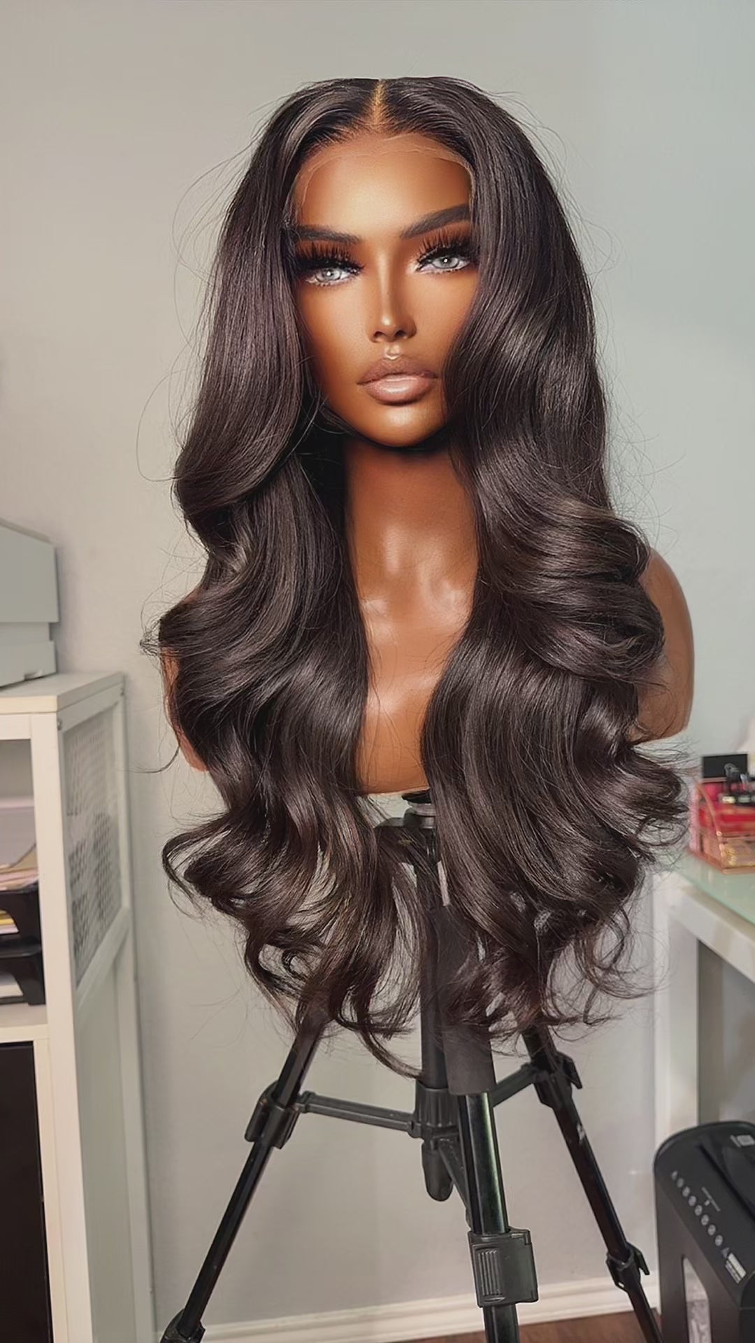 "Kourtney" Custom GLUELESS Cambodian Long LAYER w/ curtain bangs Lace Wig