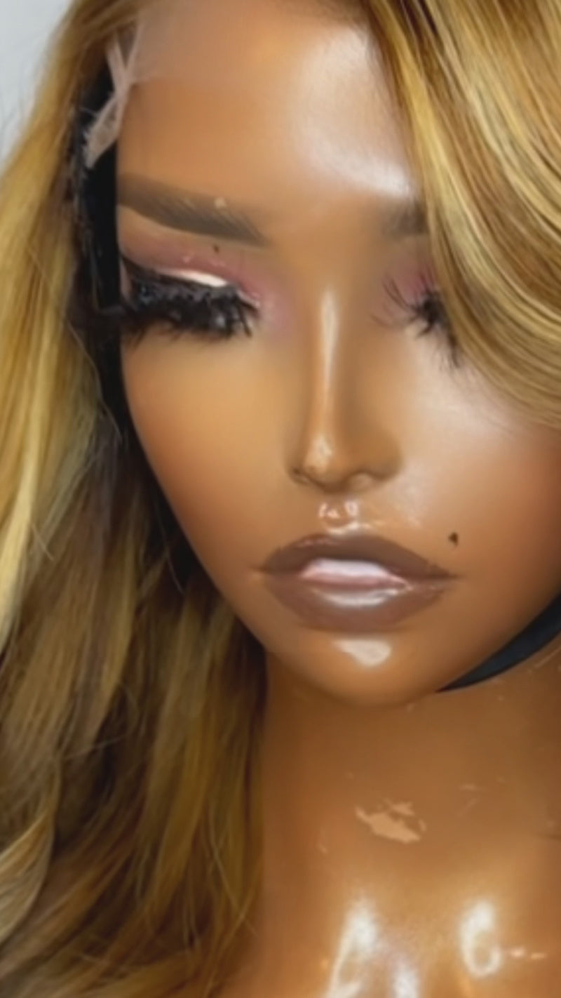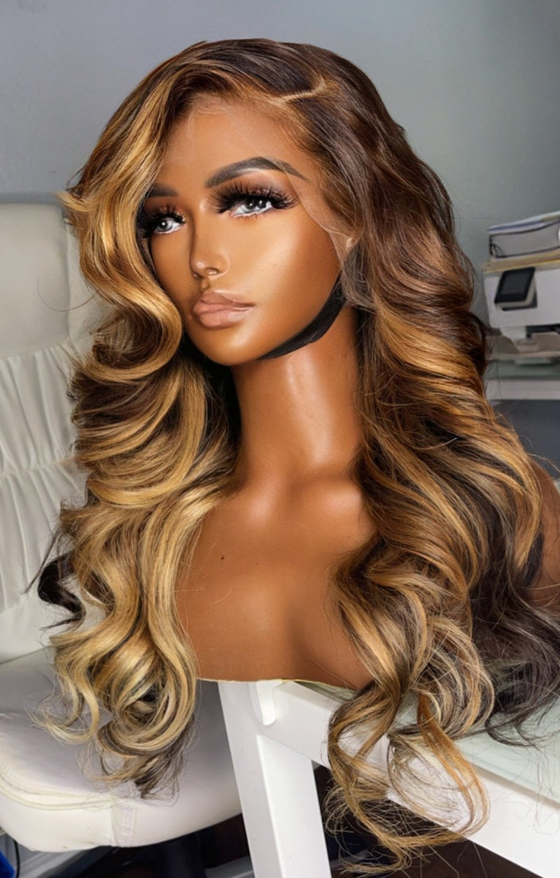 "Ashley" Honey Blonde Ombre Dark Brown CAMBODIAN Lace Wig