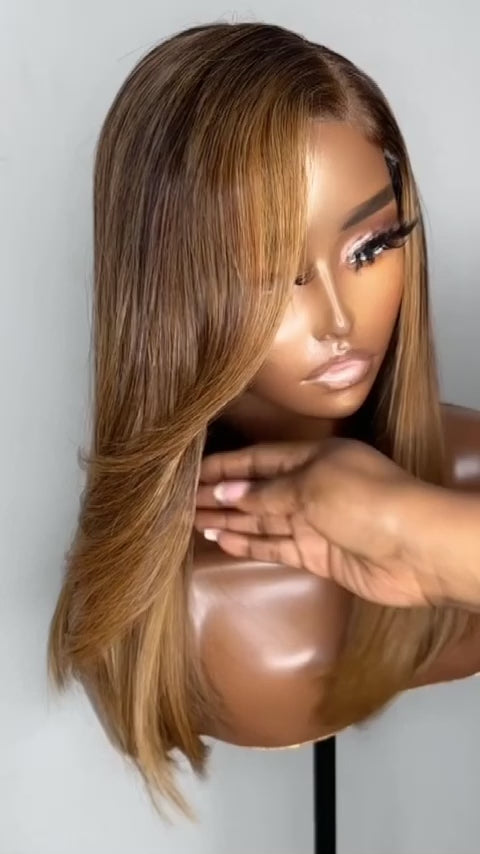 "CIARA" Wand Curled Cambodian Deep Layered 2 tone Brown Highlight Lace Wig